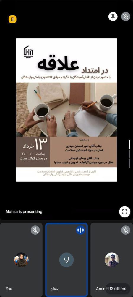 به همت انجمن علمی فناوری اطلاعات سلامت دانشگاه علوم پزشکی وارستگان، برنامه «در امتداد علاقه» در تاریخ سه شنبه ۱۳ خرداد ۱۴۰۳ با حضور پرشور دانشجویان و دانش آموختگان این رشته برگزار شد.
