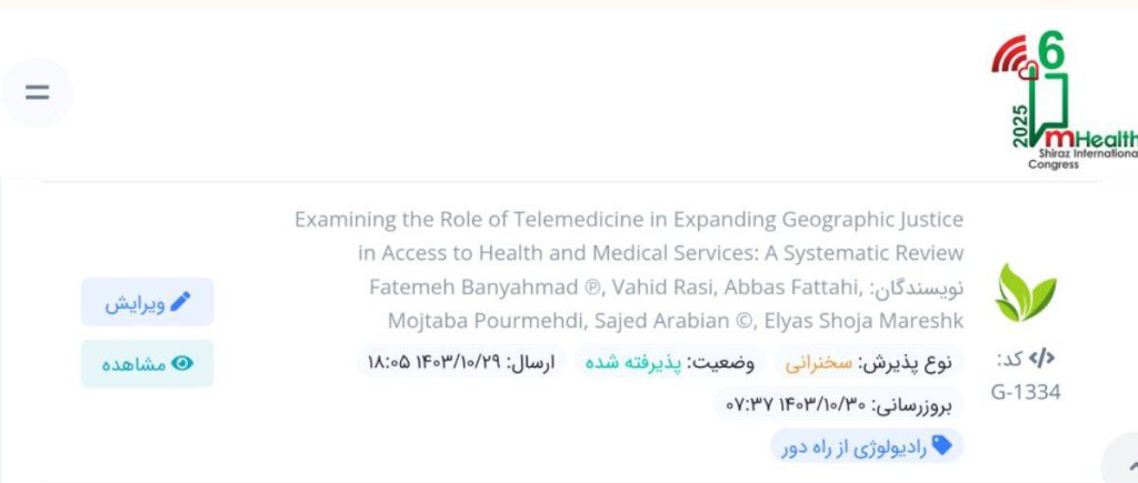 یک مقاله دانشجویی بین رشتهای از علوم پزشکی وارستگان در ششمین کنگره بینالمللی سلامت همراه شیراز بصورت سخنرانی پذیرفته شد